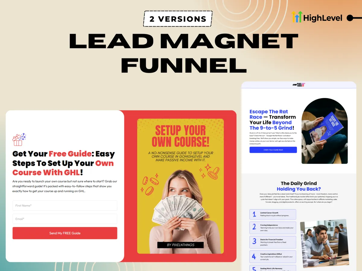 Explore our lead magnets, perfect for giveaways or premium offers. Designed for GHL, they easily draw in and captivate your audience. Use them to make a lasting impression and keep visitors hooked on your content. Start attracting more attention today!